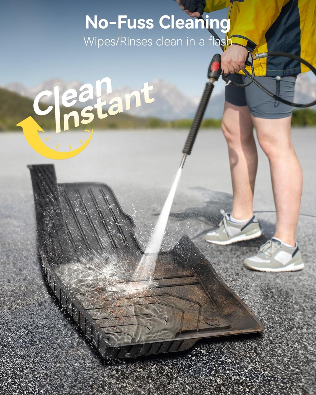 • Easy to Clean: When cleaning, just simply take off the floor liners from the car, rinse it vigorously with a hose, and then dry it with a cloth.