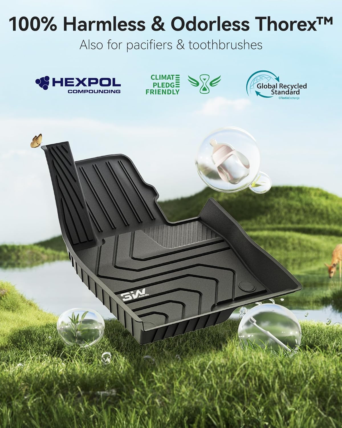 Low-density flexible TPE material is easy to clean and install. After hosing and drying with a dry towel, all the dirt will be removed, no matter with mud, slush, or dust on the liners. The liners will look brand new again