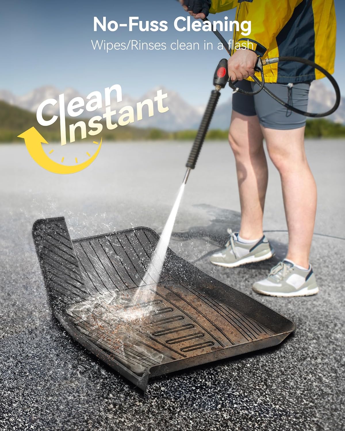 Low-density flexible TPE material is easy to clean and install. After hosing and drying with a dry towel, all the dirt will be removed, no matter with mud, slush, or dust on the liners. The liners will look brand new again