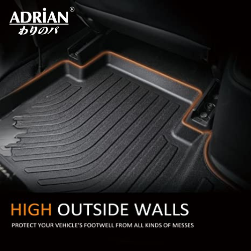 Adrian floor liners are made from 100% Brand-new Thermoplastic Elastomer (TPE), which is extremely elastic and wearable. It has a comfortable feeling of feet, prevent accidental skidding even when your feet are wet. The unique groove design also increases the friction of the mat, maintaining excellent durability even with prolonged use