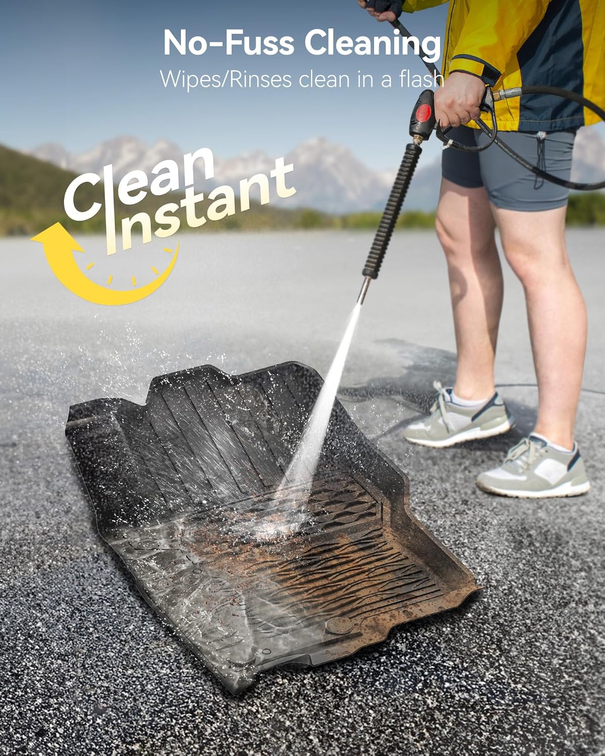 • Easy to Clean: When cleaning, just simply take off the floor liners from the car, rinse it vigorously with a hose, and then dry it with a cloth.