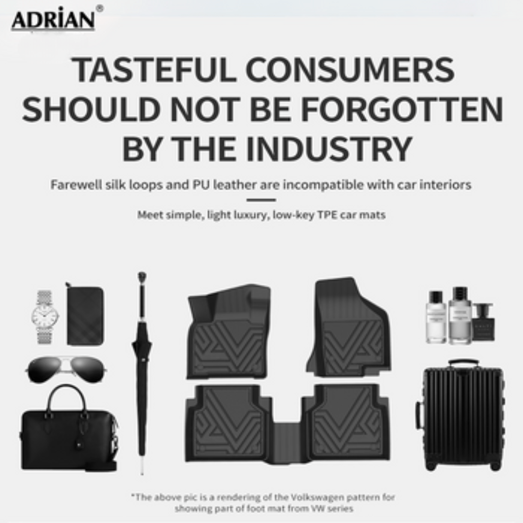Adrian car mats have good temperature resistance (-40°C-120°C), remain flexible in extreme weather such as snow, rain, slush, sand, etc., and are not easy to break, deform, deteriorate, or harden. Especially for everyone who loves outdoor activities. Give your car, van, truck, or SUV interior a first class look while protecting its resale value