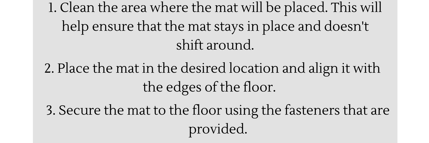 Install floor mats within 3-steps