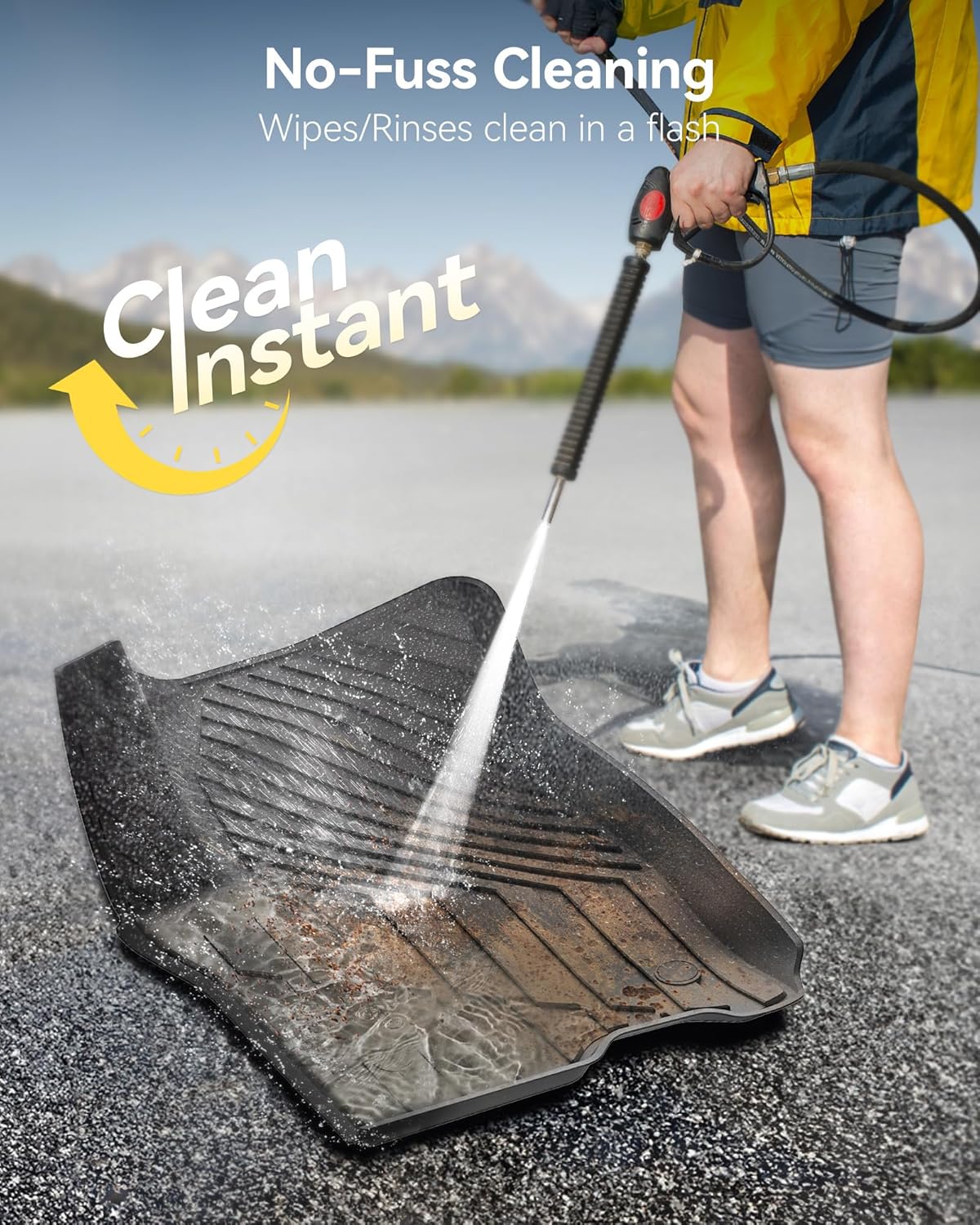 - سهولة التنظيف: عند التنظيف، ما عليك سوى نزع دعاسات الأرضية من السيارة، واشطفها بقوة بخرطوم، ثم جففها بقطعة قماش.