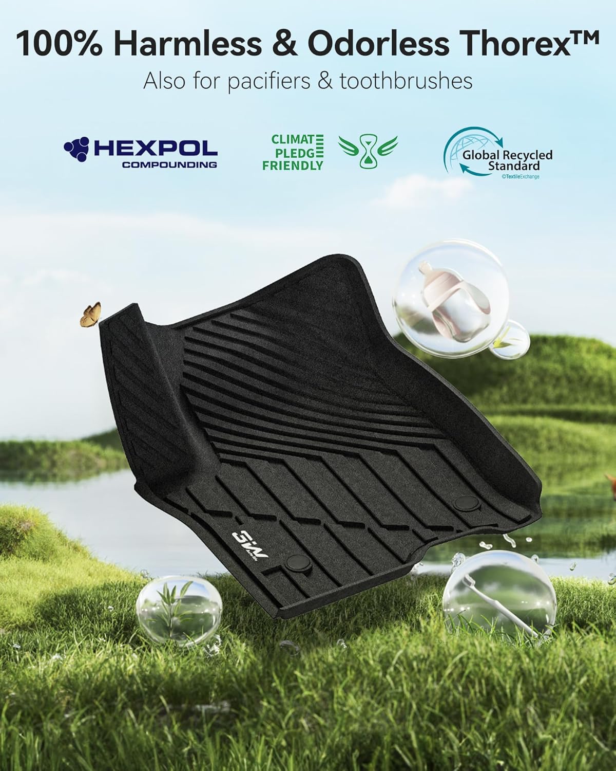 - المواد: مواد TPO اهي مادة من المطاط الصناعي المستخدم في فرش الاسنان ومنتجات الأطفال فهو امن وصديق للبيئة
